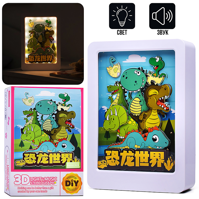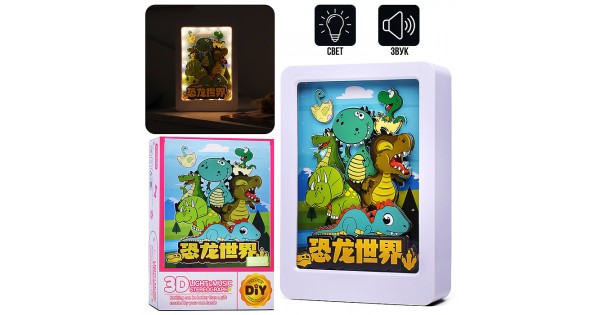 Ночник-пазл 3Д "Мир Динозавров" со светом и музыкой, в коробке