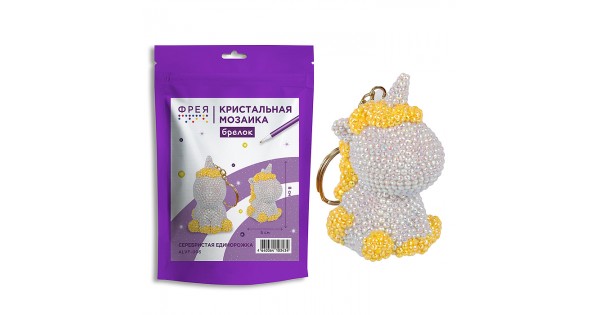 Кристальная (алмазная) мозаика брелок 5х8 "Серебристая единорожка"