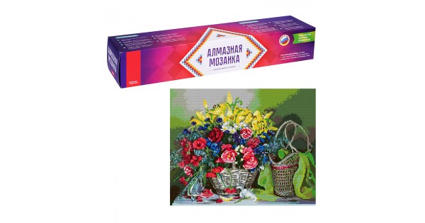 Алмазная мозаика 40*50 см (полное заполнение) "Корзина с цветами"