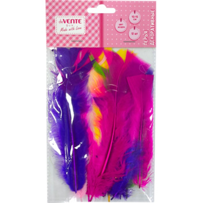 Перья декоративные "DIY" натуральные индюшиные, размер 15-20 см, 12 шт, цвет ассорти