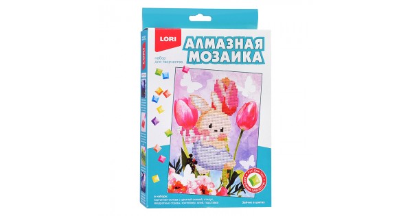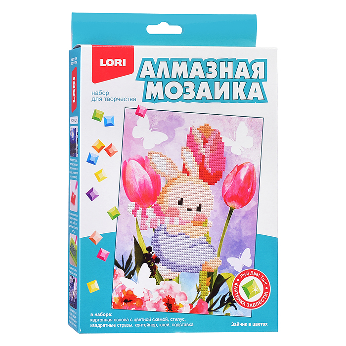 Алмазная мозаика 15*20 детская (неполное заполнение) "Зайчик в цветах"