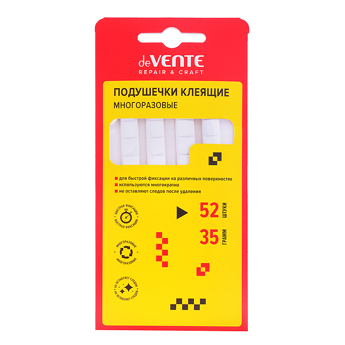 Подушечки клеящие многоразовые 52 шт, 35 г, белые, в блистерной упаковке с европодвесом