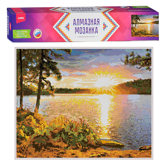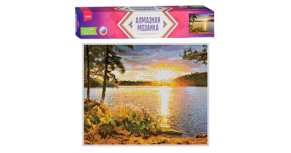 Алмазная мозаика 40*50 см (полное заполнение) "Закат над озером"