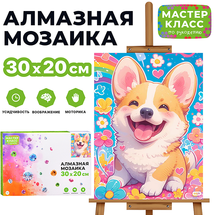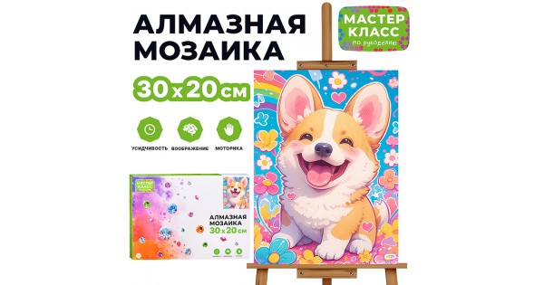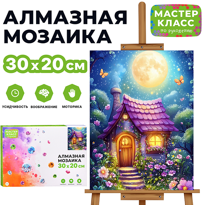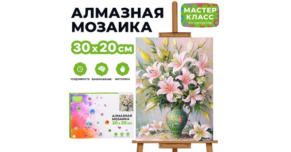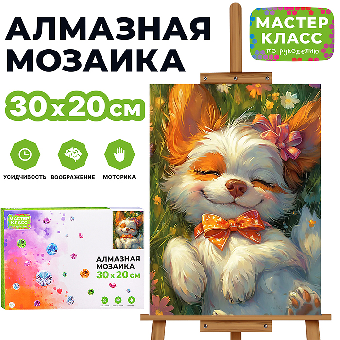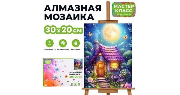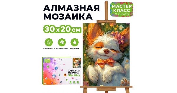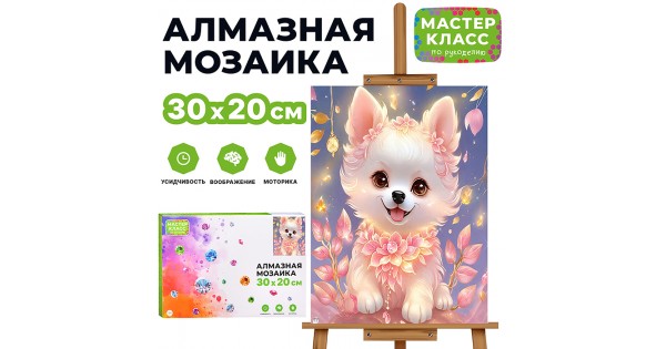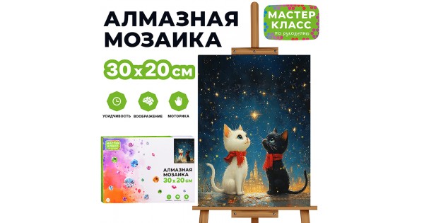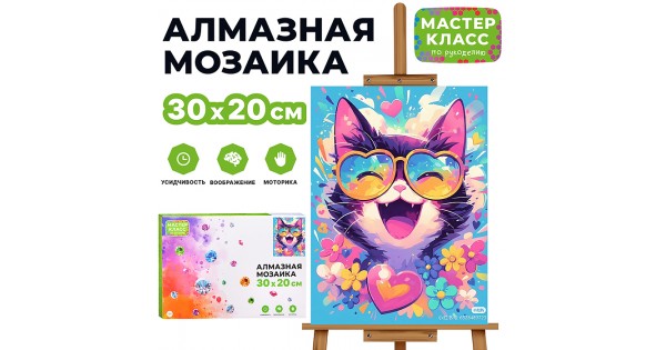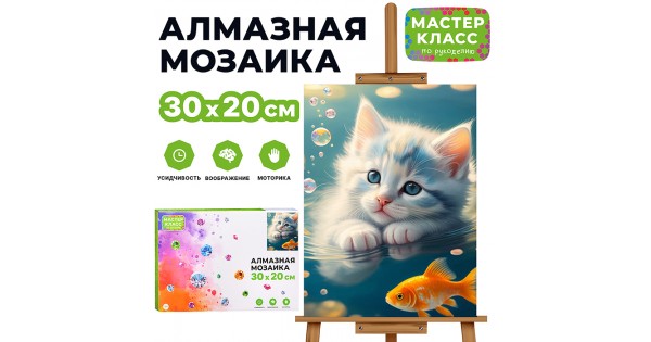 Алмазная мозаика 20х30 "Котенок и сакура" на картоне, с част.заполн. (17цв) (блест.)