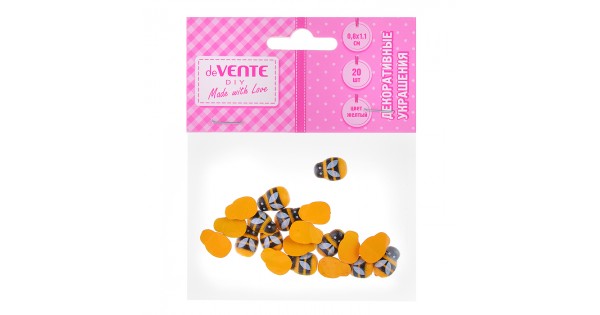 Декоративные украшения "Пчелки" деревянные, размер 8x11 мм, 20 шт, цвет желтый, в пластиковом пакете с блистерным подвесом