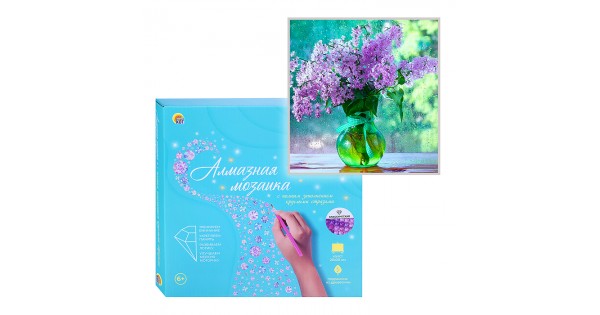 Алмазная мозаика 20х20 "Свежая сирень" с подр., с полн. заполн.(класс.) (24цв)