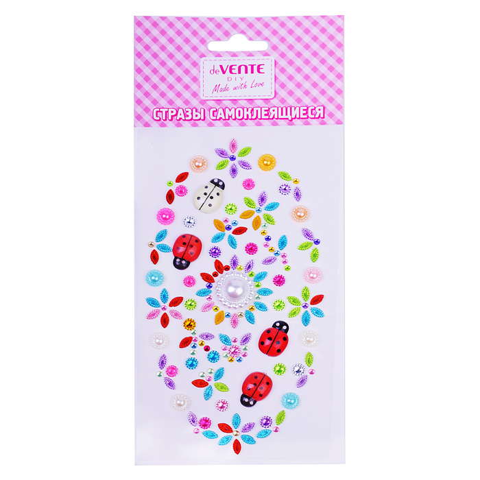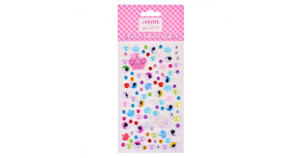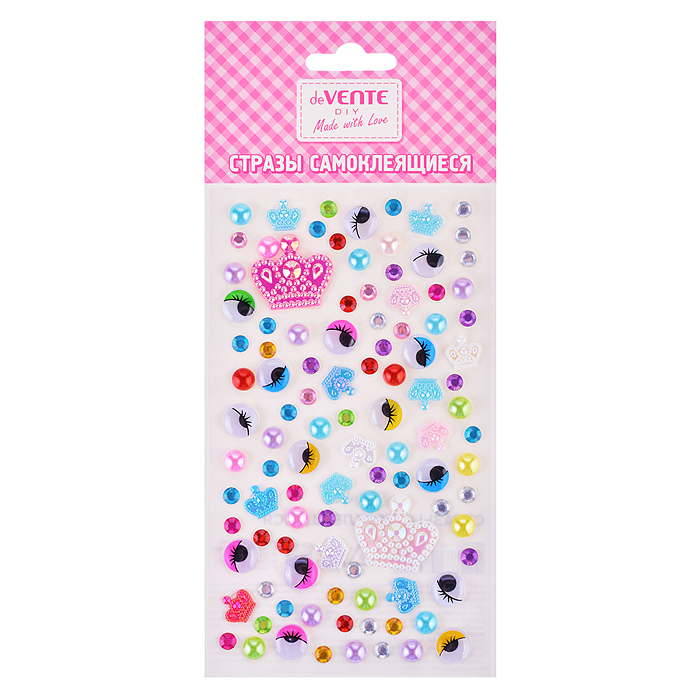 Стразы самоклеящиеся "Королевский микс" акриловые, карточка 95x170 мм, в пластиковом пакете с блистерным подвесом