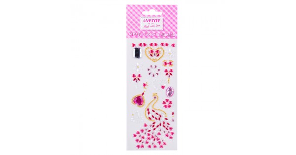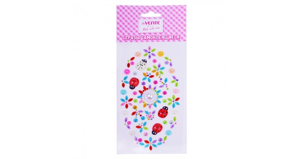 Стразы самоклеящиеся "Firebird" акриловые, карточка 7,5x18 cм, цвета ассорти, в пластиковом пакете с блистерным подвесом