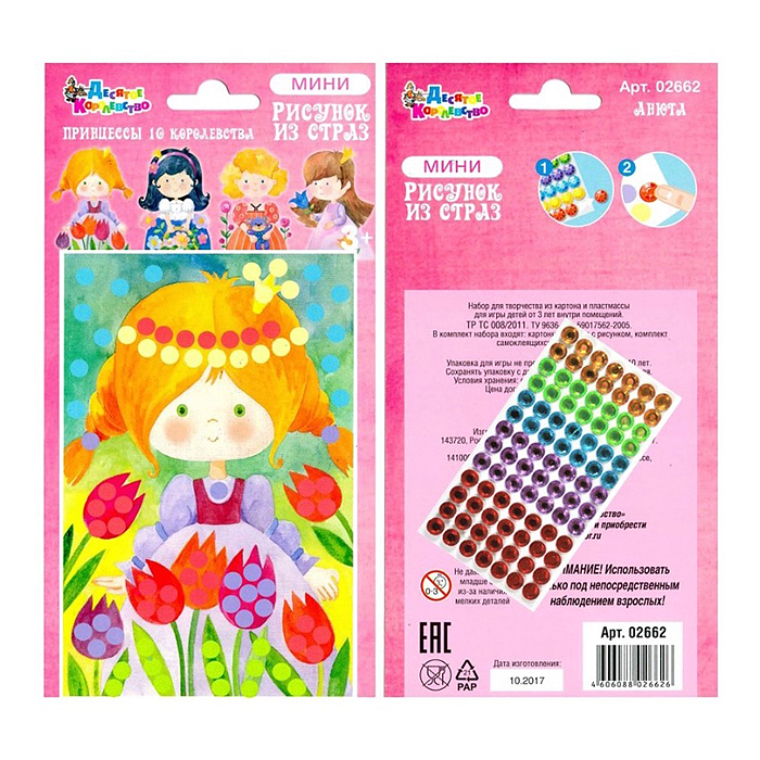 Набор для творчества. Рисунок из страз "Принцессы 10 королевства "Анюта" (мини 3х30 шт)