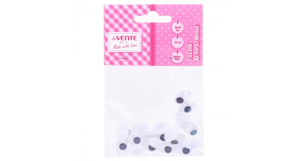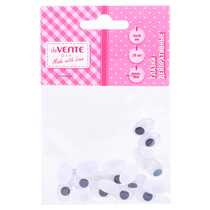 Глазки декоративные, овальные пластиковые, размер 15x10 мм, 20 шт в пластиковом пакете с блистерным подвесом