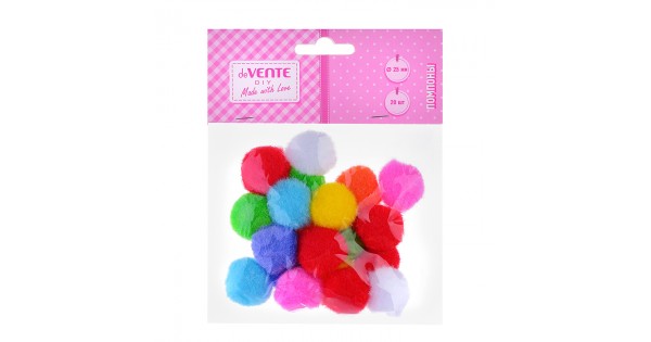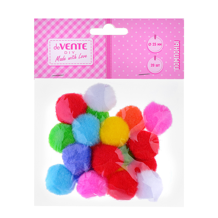 Набор помпонов для творчества 25 мм, 20 шт, в пластиковом пакете с блистерным подвесом, цвета ассорти