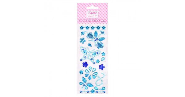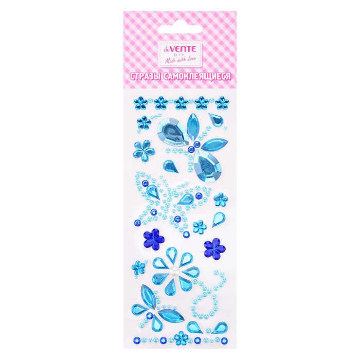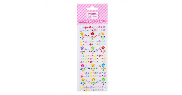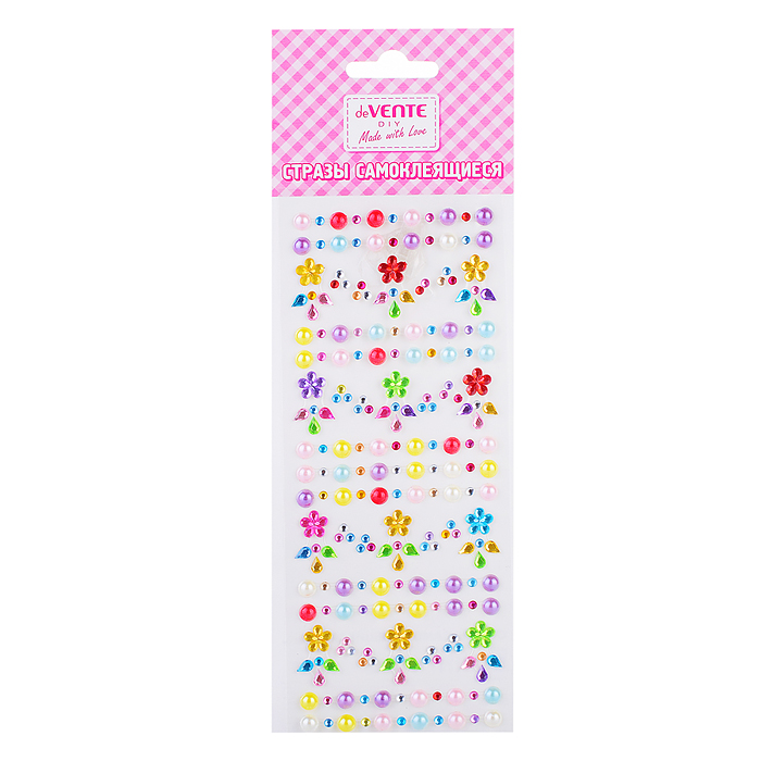 Стразы самоклеящиеся "Цветочная поляна" акриловые, карточка 7,5x18 cм, цвета ассорти, в пластиковом пакете с блистерным подвесом
