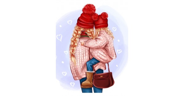 Алмазная мозаика 17х22 "Мама с дочкой" с подр., с полн. заполн. (19цв) (блест.)