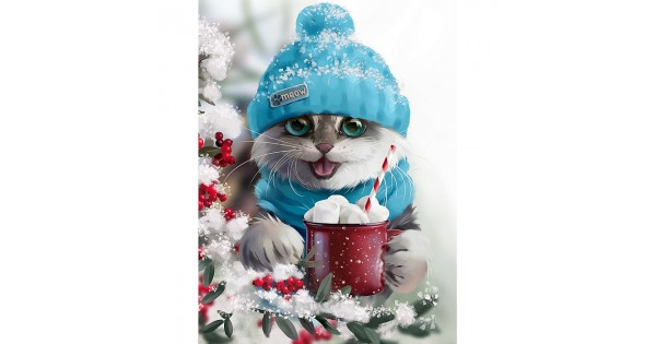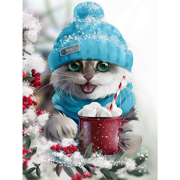 Алмазная мозаика 17х22 "Котик с какао" c подр., с полн. заполн. (20цв) (блест.)