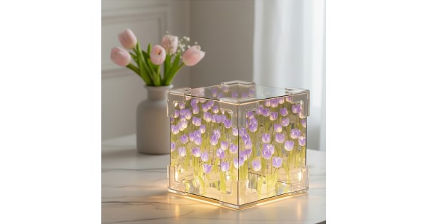 Набор для творчества-светильник "Куб" сиреневые тюльпаны, в пакете