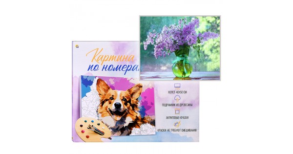 Холст с красками 40х50 по номерам "Свежая сирень" (в коробке) (30цв.)