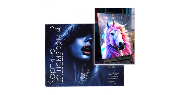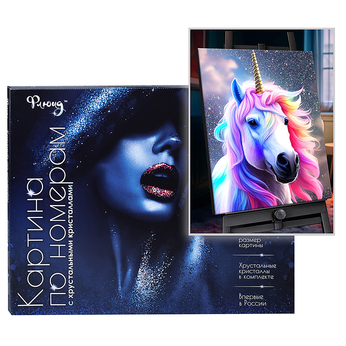 Картина по номерам 40х50 "Единорог" с кристаллами из хрусталя (29 цветов)