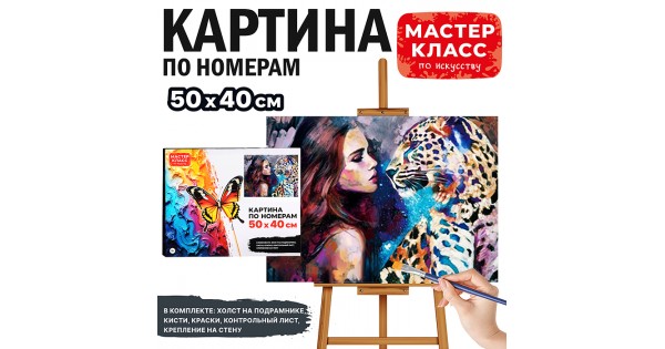 Набор для рисования "Картина по номерам 40*50 см. Девушка и леопард"