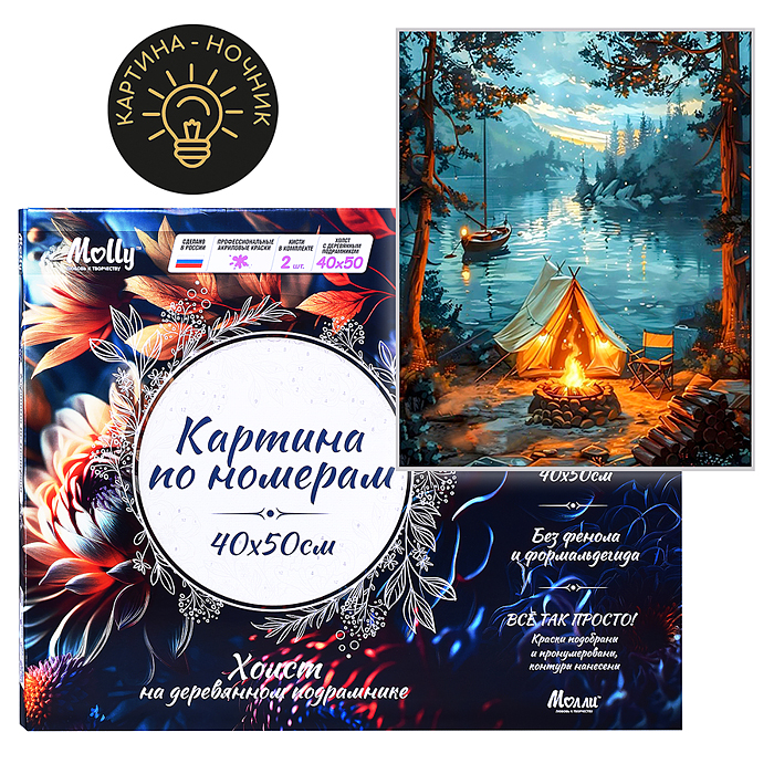 Картина по номерам 40х50 "У костра" USB LED подсветка (23 цвета)