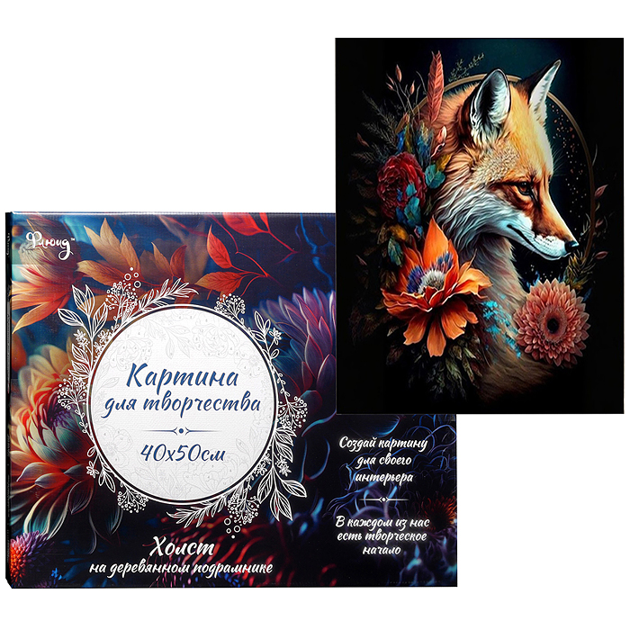 Картина по номерам 40х50 "Лиса в цветах" черный холст с поталью 24 цвета