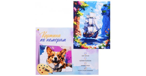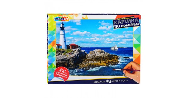 Холст с красками 30x40 по номерам "Корабль у скалистого острова" в коробке (30цв.)