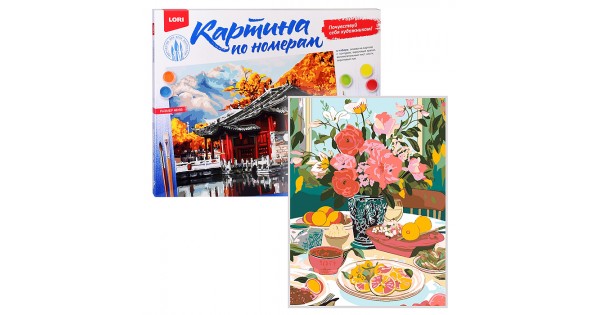 Набор для раскрашивания по номерам 50х40 "Озеро в горах Швейцарии" по мотивам картины Саврасова А.К. 1866. Фрагмент
