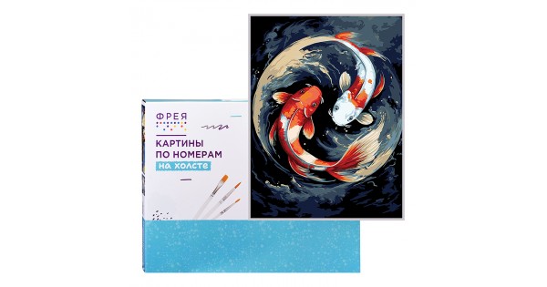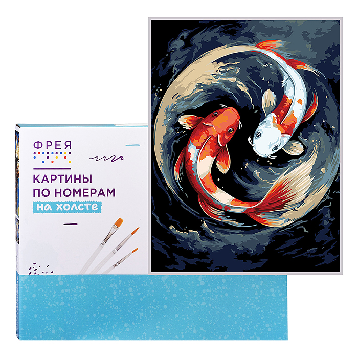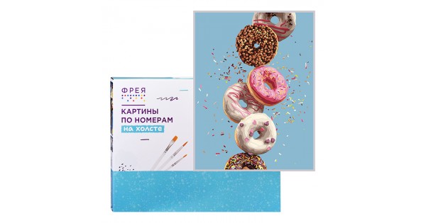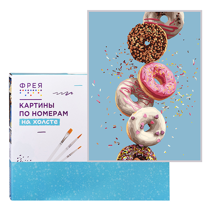 Холст с красками 20х20 по номерам "Красочный пушистый котёнок" в коробке (16цв.)