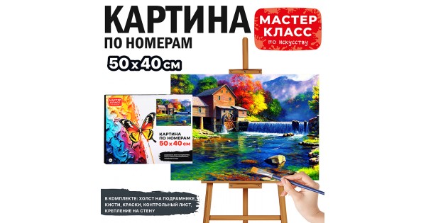 Набор для рисования "Картина по номерам 40х50 см. Осенняя водяная мельница"