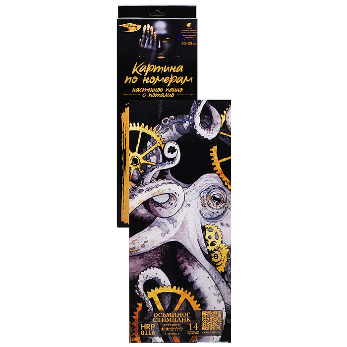 Картина по номерам 35х88 "Панно. Осьминог стимпанк" с поталью (14 цветов)