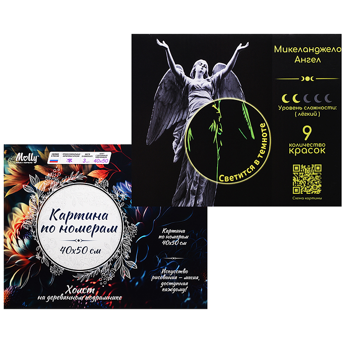 Картина по номерам 40х50 "Микеланджело. Ангел" со светящейся краской (9 цветов)