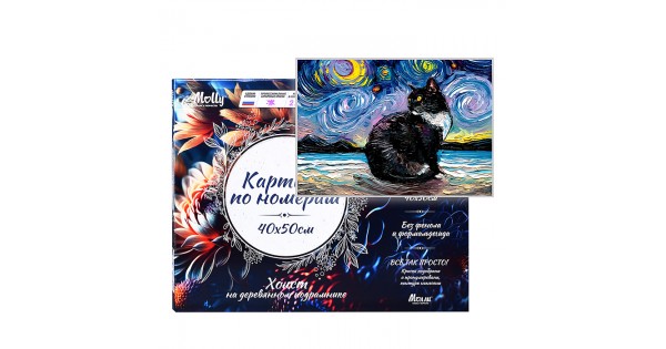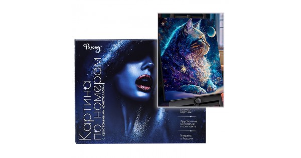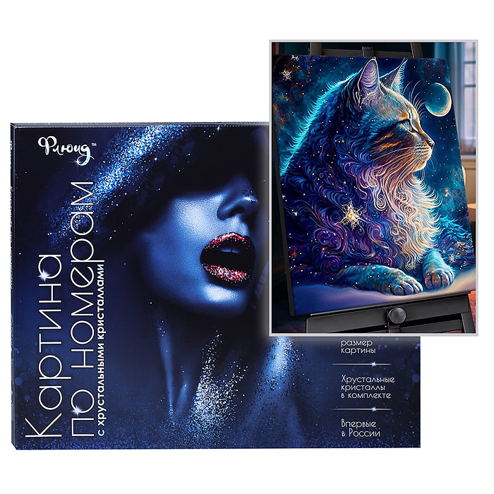 Картина по номерам 40х50 "Космический кот" с кристаллами из хрусталя (22 цвета)