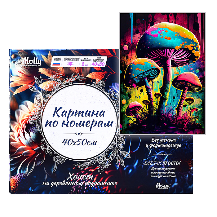 Картина по номерам 40х50 "Неоновые грибы" светящаяся краска (18 цветов)
