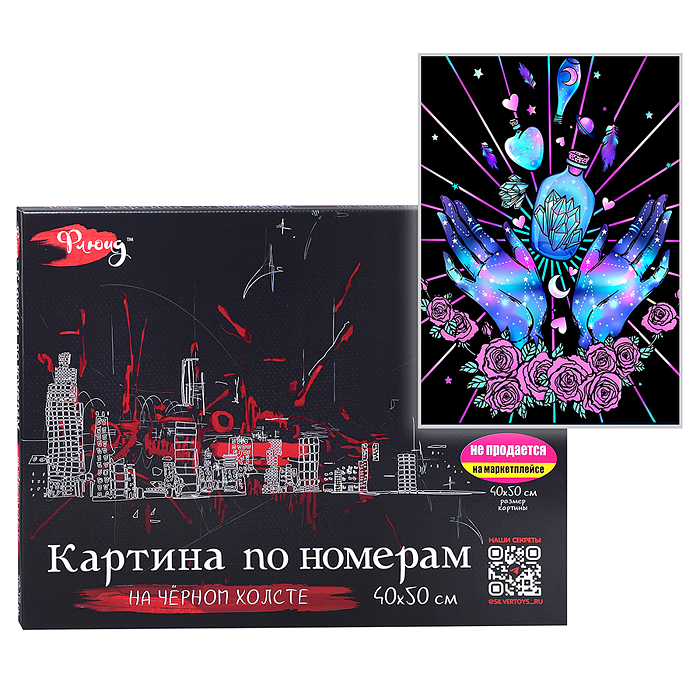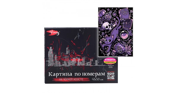 Картина по номерам 40х50 "Ведьмины вещицы" чёрный холст 4 цветов