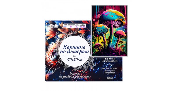 Картина по номерам 40х50 "Неоновые грибы" светящаяся краска 18 цветов