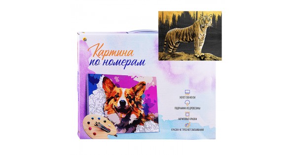Холст с красками 30х40 по номерам "Золотой тигр" (в коробке) (30цв.)