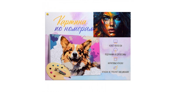 Холст с красками 40х50 по номерам "Пронзающий взгляд девушки" (в коробке) (30цв.)