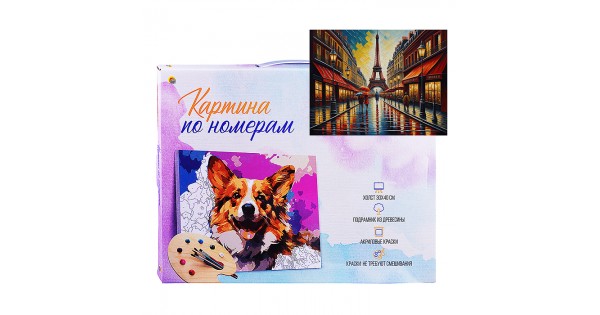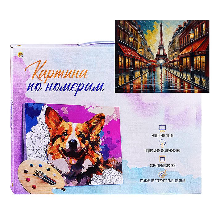 Холст с красками 30х40 по номерам "Проспект в Париже" (в коробке) (30цв.)