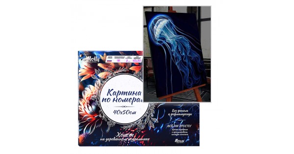 Картина по номерам 40х50 "Красивая медуза" со светящейся краской (14 цветов)