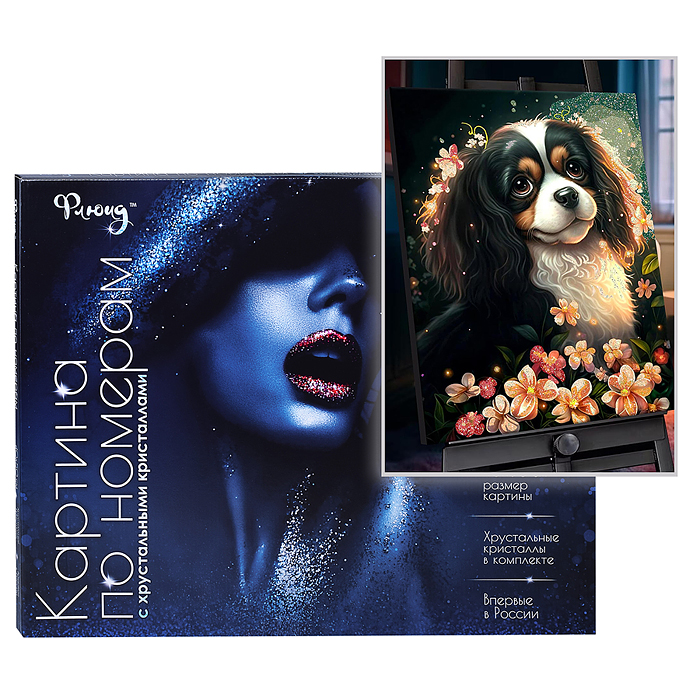 Картина по номерам 40х50 "Чарльз спаниель" с кристаллами из хрусталя (29 цветов)