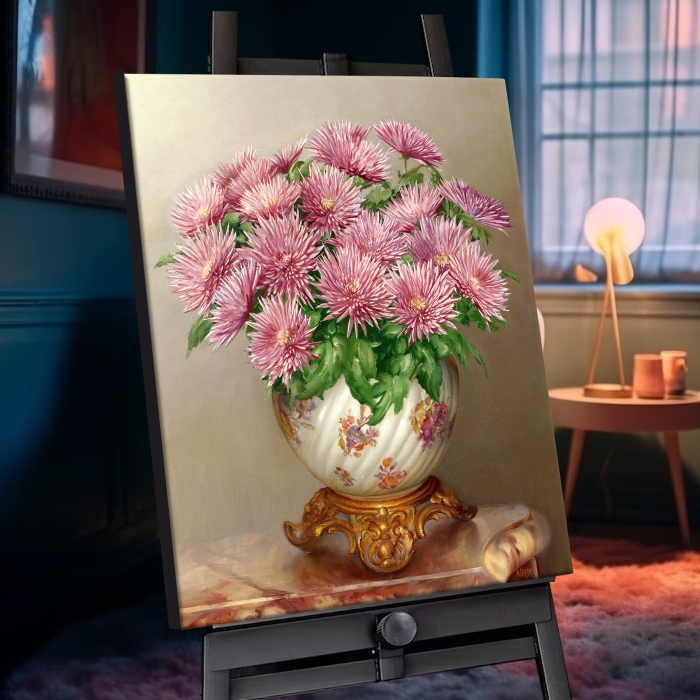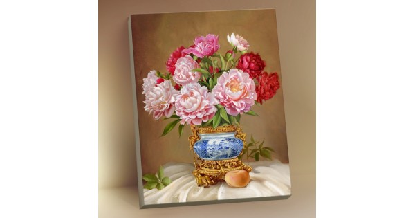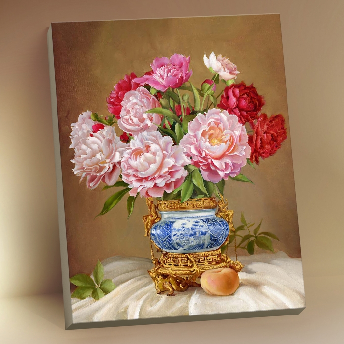 Картина по номерам 40х50 "Бузин. Пионы в Китайской фарфоровой вазочке" с поталью (28 цветов)