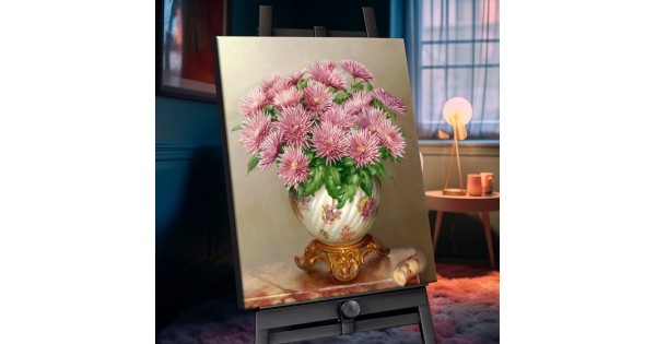 Картина по номерам 40х50 "Бузин. Розовые астры" с кристаллами из хрусталя (27 цветов)