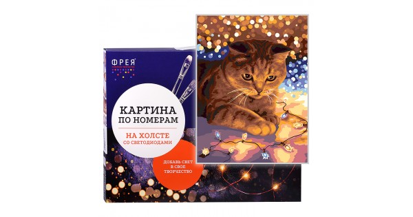 Набор для раскрашивания по номерам 40х30 "Котик с огоньками" (со светодиодами)