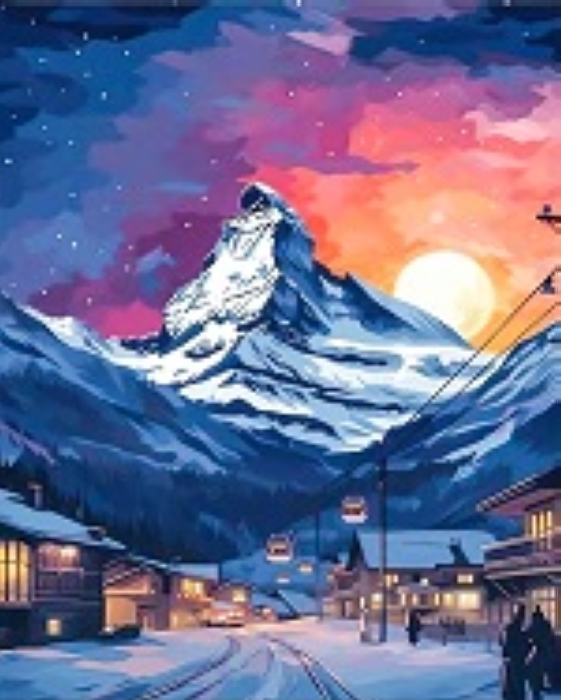 Картина по номерам 40х50 "Швейцарский курорт" USB LED подсветка (24 цвета)