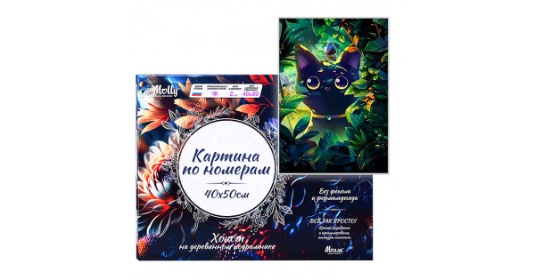 Картина по номерам 40х50 "Лиса в цветах" черный холст с поталью 24 цвета