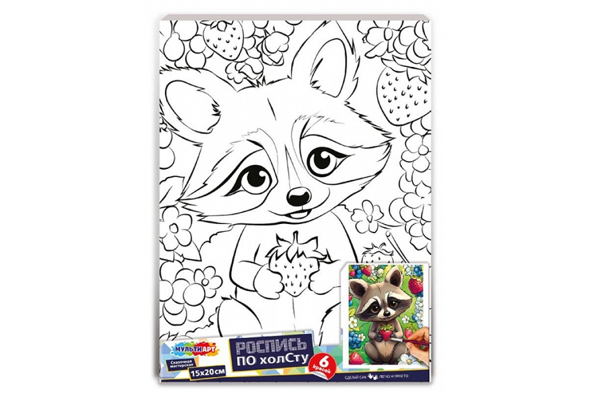 Холст для росписи 15*20 см., "Енот"