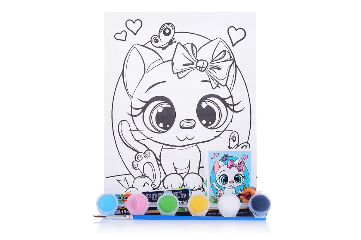 Холст для росписи 15*20 см "Кошечка с бантиком"