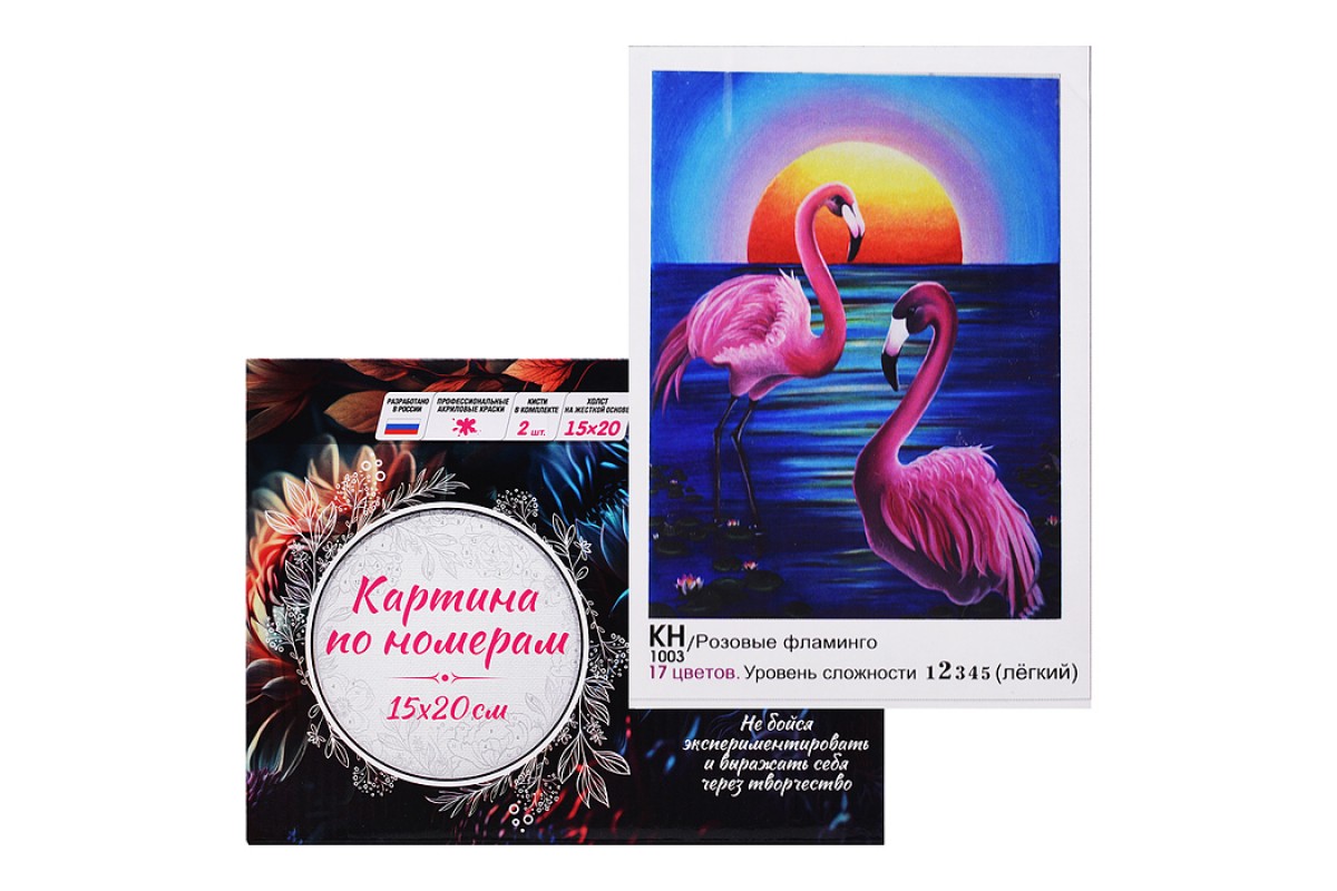 Картина по номерам 15х20 "Розовые фламинго" (17 цветов)