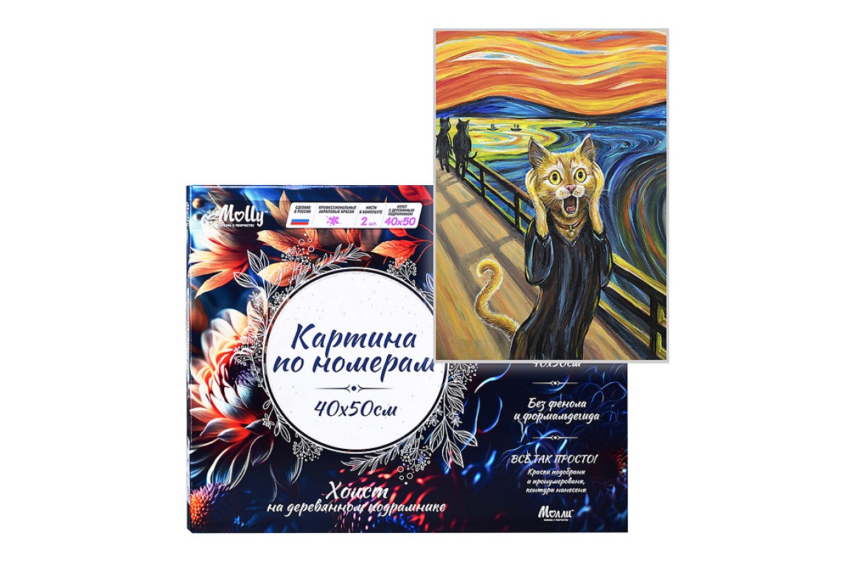 Картина по номерам 40х50 "Кошачий крик" (22 цвета)