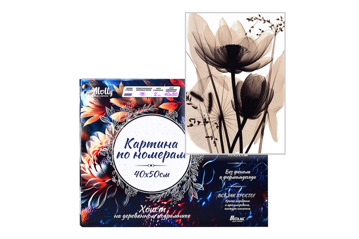 Картина по номерам 40х50 "Монохромные цветы" (11 цветов)