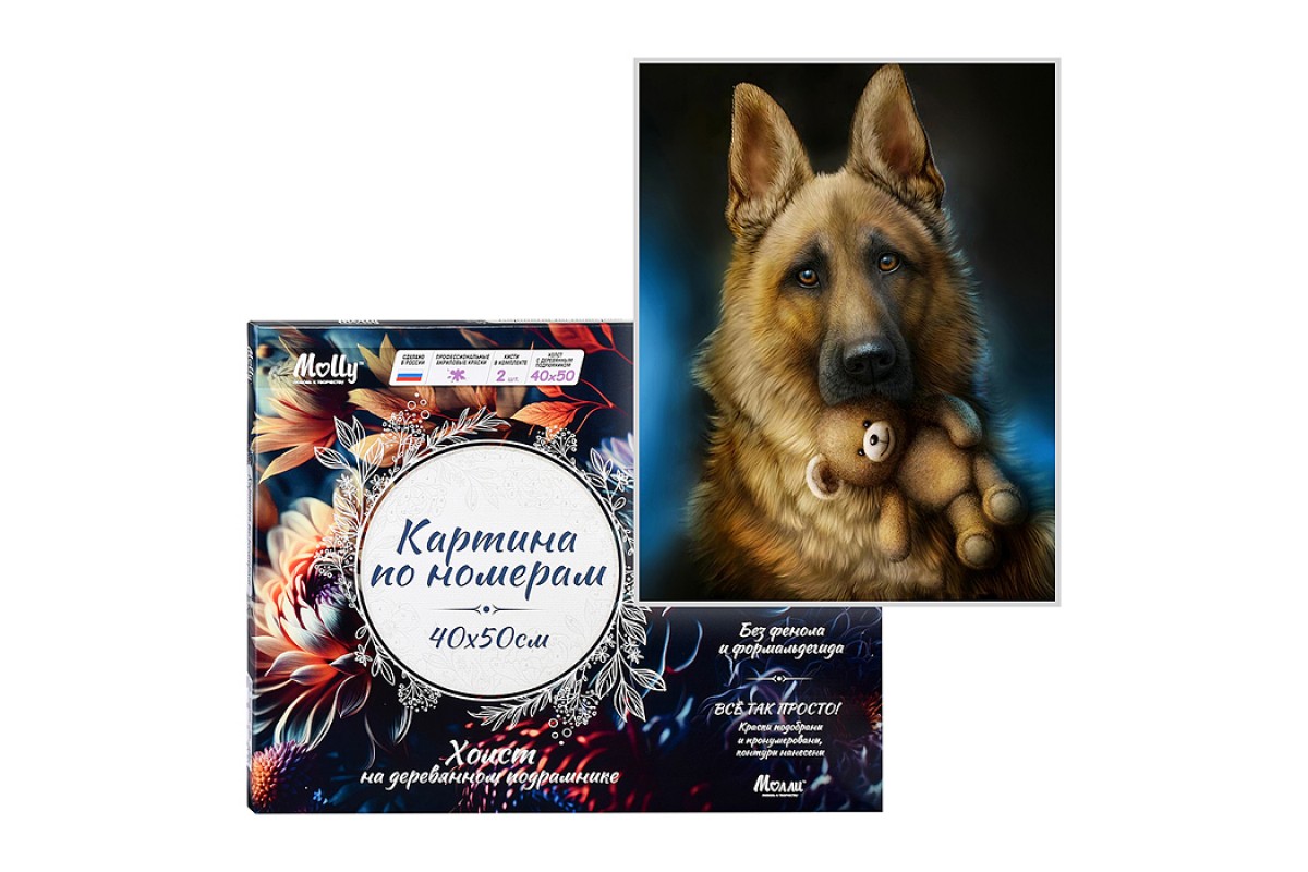 Картина по номерам 40х50 "Немецкая овчарка" (16 цветов)